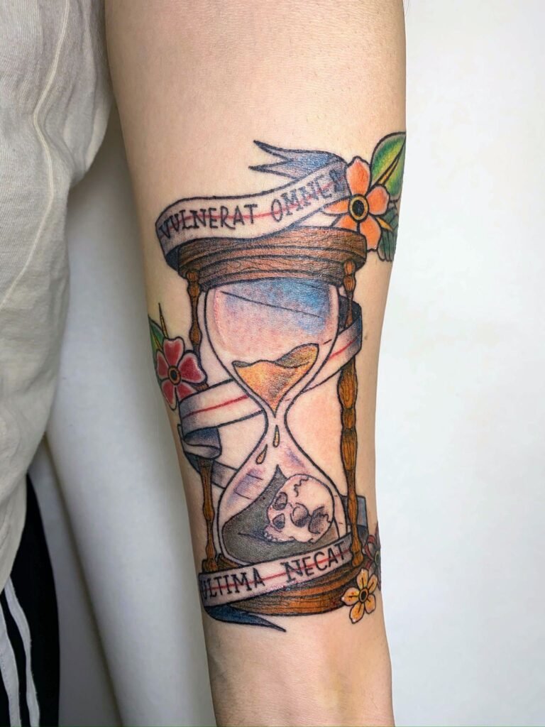 El estilo clásico del tatuaje: líneas gruesas, colores sólidos y motivos tradicionales como dagas, corazones o anclas.